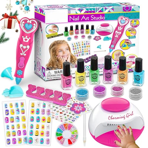 Nail Art Studio for Girls - Nail Polish Kit for Kids Ages 7-12 Years Old - Girl Gifts - Glitz 'n Glamour Girls Nails Gift Set - Cool Girly Stuff - Polish, Pens, Glitter, Stickers, Gems, Filer