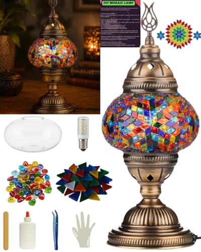 DEMMEX DIY Turkish Mosaic Lamp Making Kit 鈥 Beginner Friendly Mosaic Art & Craft Project Kit for Adults & Teens 鈥 No Grout/Plaster Needed 鈥 Fun, Easy, No Experience Required (Brown&amber)