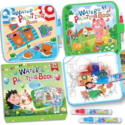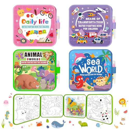 Jar Melo Paint with Water Books for Toddlers, Mess Free Watercolor Painting Activity for Kids Ages 1-3, 2-4, 4-6, Art Craft Coloring Gift with Brush, Airplane Travel Activities for Toddlers, Animals