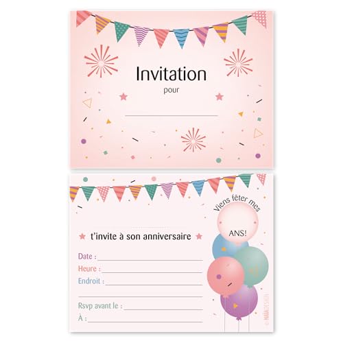 32 PCS A une Invitation de f锚te d鈥檃nniversaire pour les enfants, 5 "x7" Invitation de f锚te d鈥檃nniversaire de g芒teau pour les gar莽ons et les filles, c茅l茅bration pour les adolescents,bo卯te cadeau de ballon avec chapeau d鈥檃nniversaire et d茅coration de c茅l茅bration de g芒teau