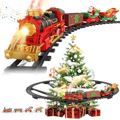 Wooden Train Christmas, Pink Christmas Train for Holiday Decoration Desktop Ornaments, Xmas for Kids Toddles,