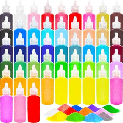 60 Pcs Kids' Sand Art Kits 小olor Sand Art Pictures Peel and Stick 12 Color 32 Pcs Sands Painting Board 2 Sands Painting Tray 2 Brush 24 Bottles