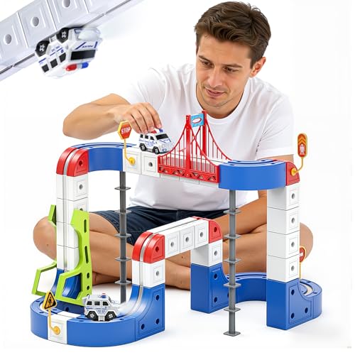UDEAS 120Pcs Wooden Train Tracks Set, 398-inch Track Expansion, Toddler Railway Bridge Toy Train Set with Airplane and Magnetic Crane, Gifts for Boys and Girls, Compatible with All Major Brands