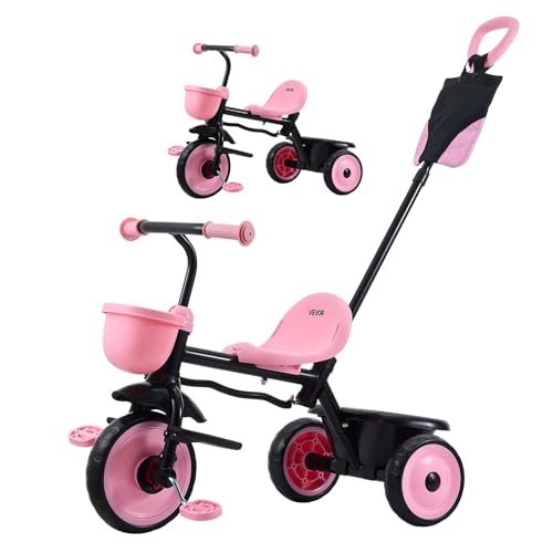 newyoo Tricycle for Toddlers 1-3, Toddler Bike, 5 in 1 Trike with Push Handle, Christmas and Birthday Gift and Toy for Girls, Convert to Baby Balance Bike, Pink, TR008