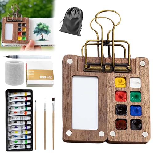 Tobios Watercolor Kit, 2025 New Tobios Mini Watercolor Kit, Portable Watercolor Travel Sets - 12 Color Mini Paint Kit with Wooden Palette, & Metal Clip, for Artists, Beginners & Painting Enthusiasts (A)