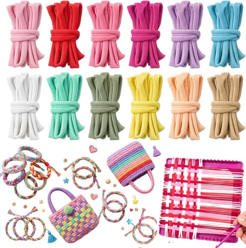 VICASKY 192pcs Weaving Loom Loops Refills Set,12 Colors Elastic Polyester Loom Potholder Loops Refill Kit for Kids DIY Crafts Favors Making Supplies