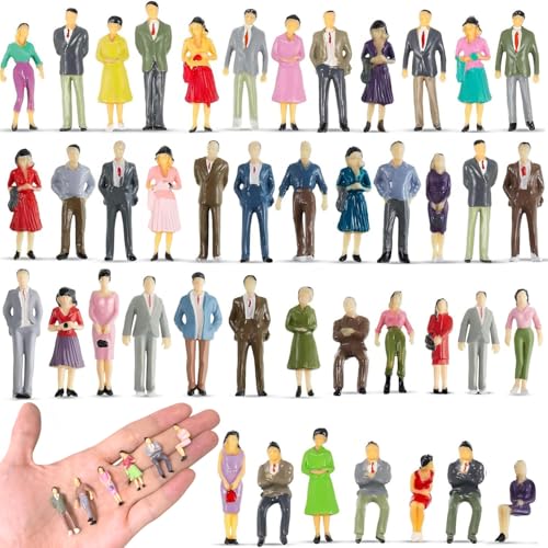 SundiooK Model People Figures and Benches Train Railway Layout 1:50 for Scale, 50 pcs Passengers + 6 Model Benches, Plastic Seated Standing Figures, Mixed Colors