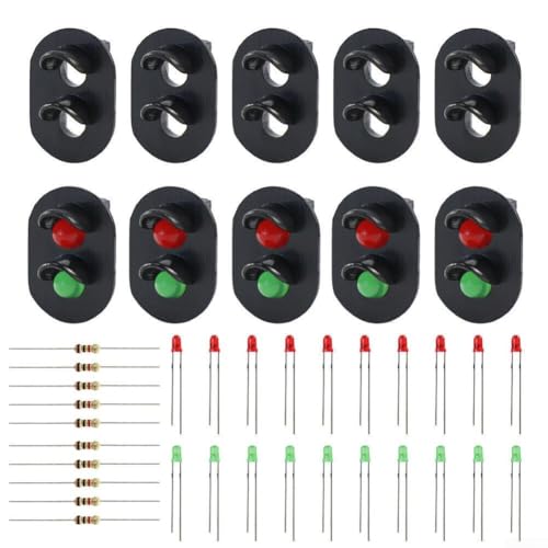 Violiica 5 Pcs 20mm Green/Red LED Railroad Dwarf Signals with Resistors for Model Train Layouts, 3V 20mA for HO Scale 87