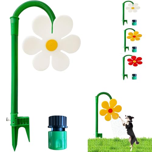 Crazy Daisy Sprinkler - 360掳 Rotating Decorative Flower Water Sprinkler for Kids, Crazy Dancing Daisy Sprinklers Stake with Adapter for Lawn & Garden Yard Watering Pets Playing (White)