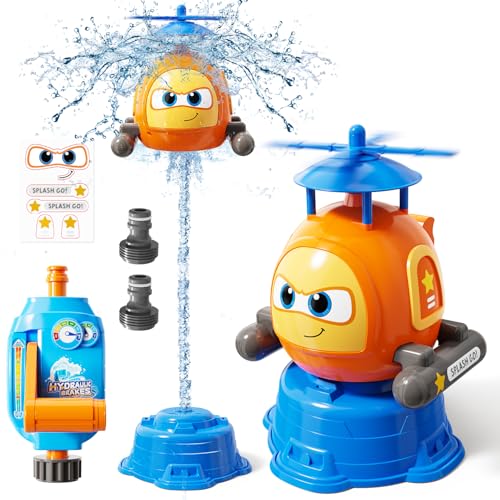 Flying Helicopter Water Sprinkler for Kids W/Tactile Click Feedback Valve, Summer Outdoor Toy for Toddlers, 360掳 Rotating Airplane Sprinkler W/DIY Stickers, Splashing Fun Toys for 3-8 Boys Girls Gifts