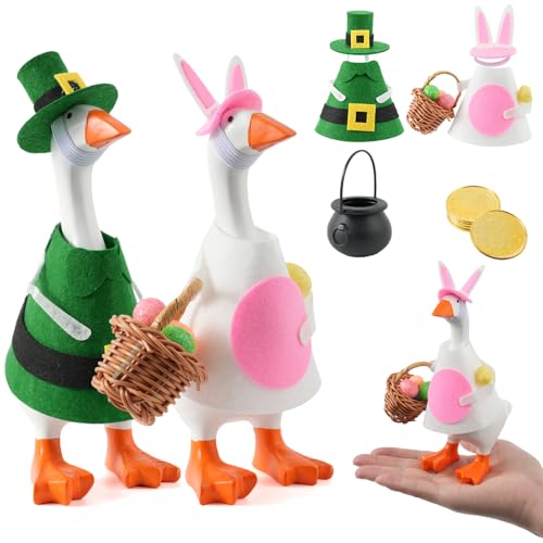 linastu 4 Pcs 7inch Desk Goose Outfits, Mini Desktop Goose Clothes with Crystal Rhinestone Tiara Crown, Heart-Shaped & Belted Necklace and Tutu Dress for Magnetic Goose Statue