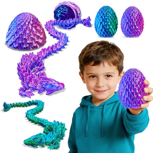 JOYIN 4Pcs 3D Printed Dragon Eggs with Laser Color Dragon, Articulated Toys, Easter Fidget Toy Basket Stuffers for Kids Party Favors, Easter Game, Egg Hunt, Classroom Prize Supplies