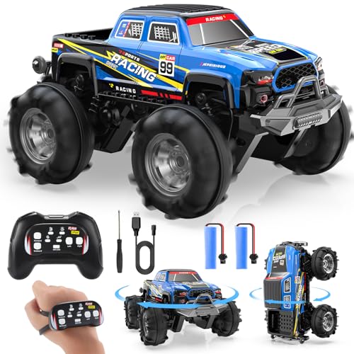 Tecnock Remote Control Cars for Kids, 2.4GHz RC Car with Type-C Easy Charging, 4WD Double Sided 360掳 Rotates and Flips RC Stunt Car, Toys Gift for Boys and Girls,Blue
