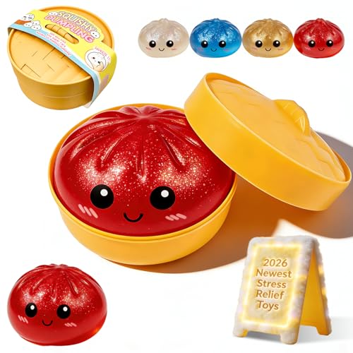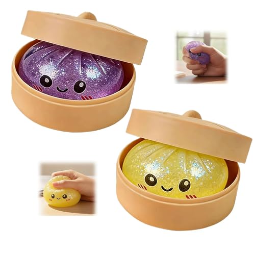 Mystery Dumpling Squishy, Glitter Dumpling Squishy Box, Soft Slow Rising Squeeze Ball, Dumplings Stress Reliever for People (Gold)