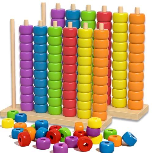 Coogam Wooden Blocks Stacking Game with Storage Bag, Colorful Toppling Tower Building Blocks Balancing Puzzles Toys Learning Educational Sorting Family Games Montessori Toys Gifts for Kids