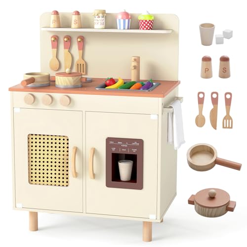 Melissa & Doug Thirst Quencher Wooden Drink Dispenser Pretend Play Set with Cups, Juice Inserts, Ice Cubes - FSC CertifiedPretend Play Soda Fountain, Food Sets for Kids Kitchen, for Kids Ages 3+