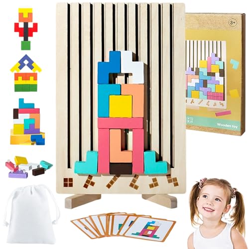 Wooden Stacking Puzzle Toy, 3D Montessori Brain Blocks, Wooden Tetris Puzzle for Kids Ages 3-6, Giant Russian Block Game for Family Activities & Home Decor (1PC)