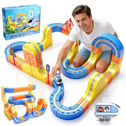 Electric Train Set for Kids 3-8, 3D Train Rail Car Track Building Toy Set, Gravity-Defying Train Tracks, 225 Pcs(80 Track +2 Car) Electric Train Toy, Kids Train Sets STEM Learning Gift for Boys Girls