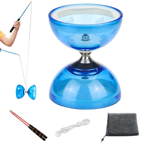 MAGICYOYO Pro Triple Bearing Diabolo Small Size 4鈥 Chinese Yoyo Toy with 2 Pairs Carbon Sticks+ 2 Extra Strings +1 Net Bag, High Performance Chinese Yoyo Diabolo Skill Toy (Blue)
