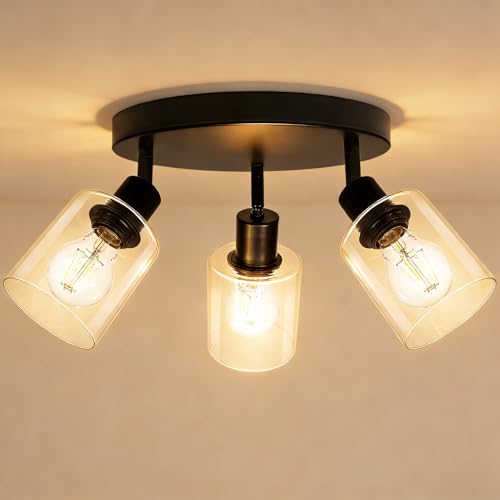 SEEBLEN 3-Light Industrial Directional Track Lighting with Pull Chain On/Off, Adjustable Round Ceiling Spotlight, Morden Nickel Flush Mount Kitchen Light for Hallway,Dining Room,Gu10 Bulbs Included