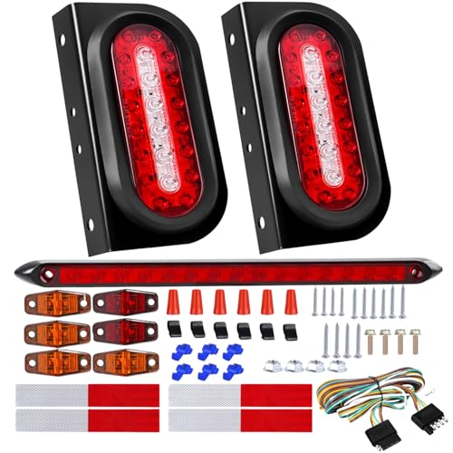 Oval Trailer Lights, Trailer Light Bracket, LIMICAR 6" inch Trailer Tail Light with flush Mount Grommets Plugs Mounting Brackets, LED Trailer Lights Kit for Utility Trailer