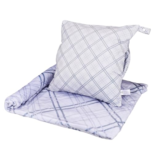 BlueHills Premium Soft Plush Travel Blanket Pillow for Airplane Traveling Essentials in a Bag Flight Throw with Hand Luggage Belt Backpack Clip Compact Portable Plane Accessories Grayish Blue - T026
