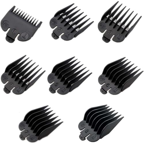 8 Pack Clipper Guards for Andis T Outliner, 1/32" to 11/4" Universal Guards Guides, Snap-on Blade Attachment Combs Set with Springs for Hair Clippers, Black