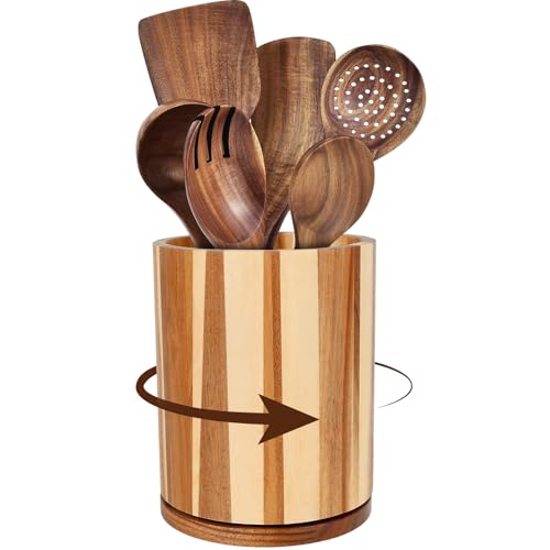 Homquen 360掳 Rotating Utensil Holder, 6.3''+4.7'' Plastic Kitchen Utensil Holder for Countertop, Large Cooking Utensil Crocks for Kitchen Decor, Utensil Organizer for Spatula, Set of 2 (White)
