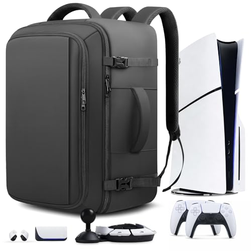 CURMIO Game Console Carrying Case Compatible with PS5/ PS5 Slim/ PS4 Game Console, Travel Console Storage Bag Case with Multiple Pockets for Laptop (Up to 15.6''), Controller, Gaming Accessories