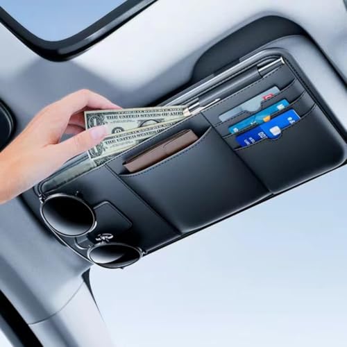 Sunglasses Holder for Car, 2-Pack Sunglass Clip for Car Visor Magnetic Sunglass Visor Clip and Pu Leather Ticket Card Clip Accessories for All Car Models