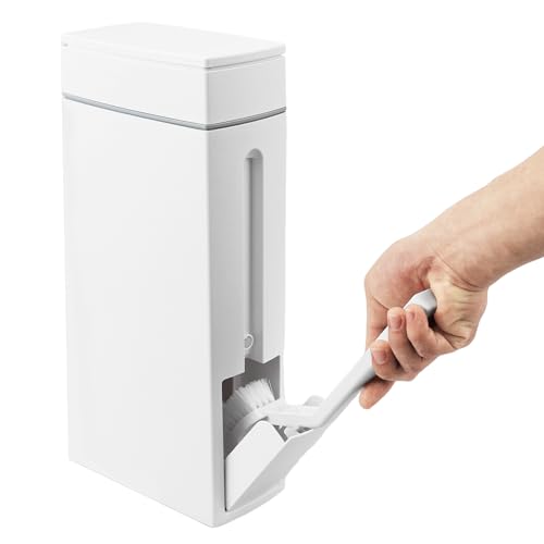 Xugoox Slim Bathroom Trash Can and Toilet Brush Set, Narrow Toilet Trash Can with Pop-up Lid, Brush & Holder, 5L Garbage Can Modern Waste Can for Limited Small Narrow Space