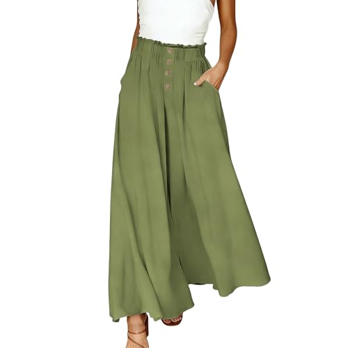 Women Cotton Linen Palazzo Pants High Smocked Waisted Drawstring Wide Leg Pant Pleated Lounge Trousers with Pockets
