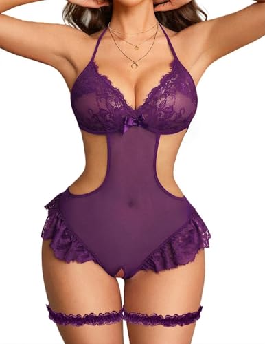 Avidlove Lingerie for Women Deep V Teddy Lingerie Lace Bodysuit Cut Out Mini Babydoll