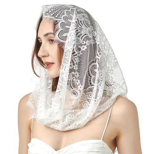 RUNRAYAY Soft & Comfortable Chapel Veil, Spanish Lace Floral Mantilla Veils Wrap Shawl Mass Head Covering Scarf for Women Church