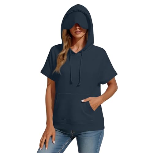 Famulily Sweaters for Women Lightweight Color Panel Pullover Hoodies Drawstring Casual Long Sleeve Sweatshirt with Pocket