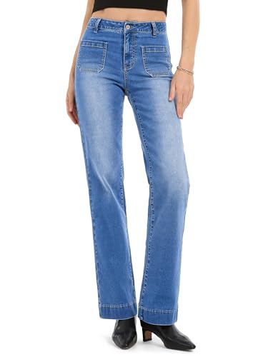 SIDEFEEL Women's High Waist Jeans Stretchy Flared Wide Leg Pockets Front Denim Pants Bootcut