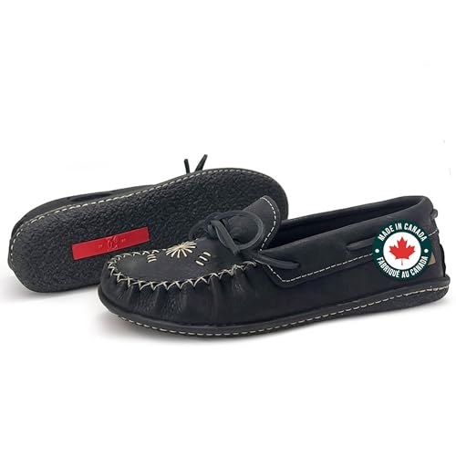 Laurentian Chief Moccasin Slippers for Women with Genuine Cowhide Leather - Canadian Quality Durable Comfortable Stylish Indoor Fancy Shoes for Ladies