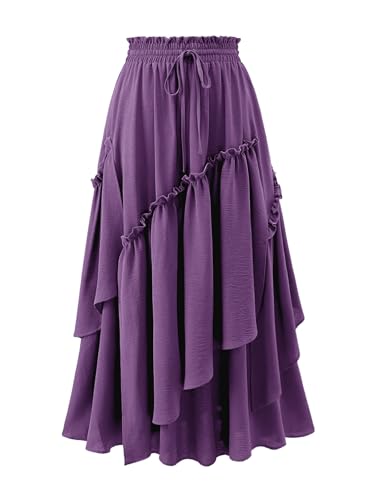 HERBATOMIA Women鈥檚 Maxi Skirt Flowy Elastic Waisted A-Line High Slit Long Skirts for Women with Pockets