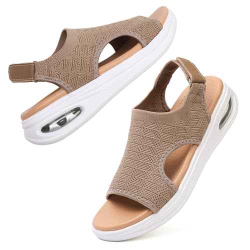 Women's Walking Sandals Summer Athletic Sport Sandals Orthopedic Arch Support Comfy Orthotic Sandals Open Toe Slip On Quick-Drying Knit Beach Water Sandals Mesh Soft Sole Casual Sandals
