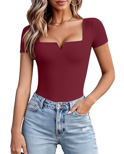 Avidlove Women's Bodysuit Short Sleeve Square Neck Body Suits Thong Double Lined Slim Fit Basic Tee Shirts