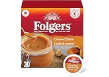 Folgers Caramel Drizzle Flavoured Light Roast Coffee Pods, Single Serve One Cup Pods made with Arabica Beans for Hot or Iced Drinks, 30 Count (Pack of 1)