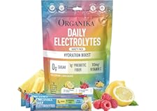 Organika Canadian-Made Electrolytes Powder - Variety Pack Sachets (Raspberry/Lemonade/Pineapple) On-the-Go Sugar-Free Hydration and Electrolyte Replenishment with Prebiotics and Vitamin C, 3.5g x 21ct
