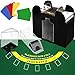 • Blackjack Game Combo Set - 6 Decks Automatic Card Shuffler, Acrylic Blackjack Shoe and Discard Tray, Green Color Layout Felt, 10 Pieces Cut Cards, Poker Accessories for Casino, Party Night, Club Game