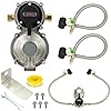 - Package includes: 1x 2-Stage Auto Changeover RV Propane Regulator; 2x 18'' Stainless Braided Propane Hoses; 1x Roll Sealing Tape; 1x Wrench; 5x Screws.