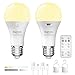 Rechargeable Light Bulbs E26 with Remote, 3 Colors USB Rechargeable Bulb LED with Timing Function Battery Operated Light for Outdoor Emergency Light (2-Pack)