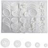 Package included: 100 pieces white button, available in five sizes 0.39inch, 0.5inch, 0.6inch, 0.8inch and 1inch. nice mix, and good value. 100 pieces white buttons are packaged in a clear plastic box, to meet your different needs.