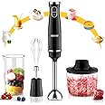 - 【2 Speeds-Conquer the Entire Kitchen】 The hand blender has two speeds, high speed and low speed. The simple speed design allows you to easily conquer all kinds of food without using your brain. You can choose high speed or low speed according to actual needs to make salad dressings, juices, milkshakes, stir meat, vegetables, and cream cheese. What's most unexpected is that this stick blender can also make baby food. Let novice mothers no longer worry.