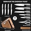 Product Summary: Knife Set with Block, Razor Sharp 12PCS High Carbon Stainless Steel Block Knife Sets, Premium Knife Set with Sharpener for Home and Kitchen