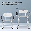 Product Summary: Careboda Shower Chair with 6 Adjustable Height and Tool-Free Assembly, Bath Seat with Removable Back and Padded Arms for Inside Shower, Anti Slip for Safety for Elderly, Adults, Handicap & Disabled