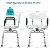 - COMFORT AND CONVENIENCE: Equipped with removable armrests and backrest, this shower chair combines versatility and convenience. The armrests and backrest are padded with EVA, which is both comfortable and easy to keep dry, easily adapting to different bathing needs.